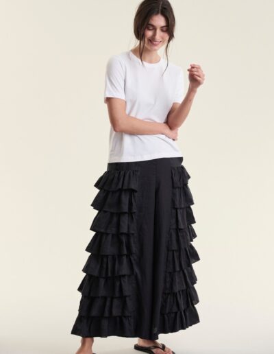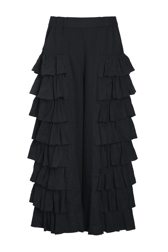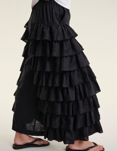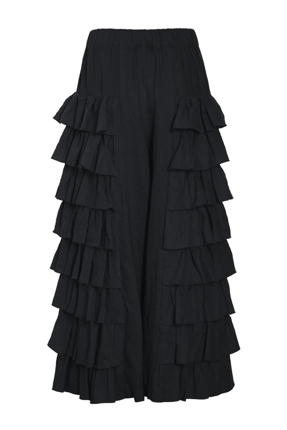 Flounce Pants Airy Linen Black 15195