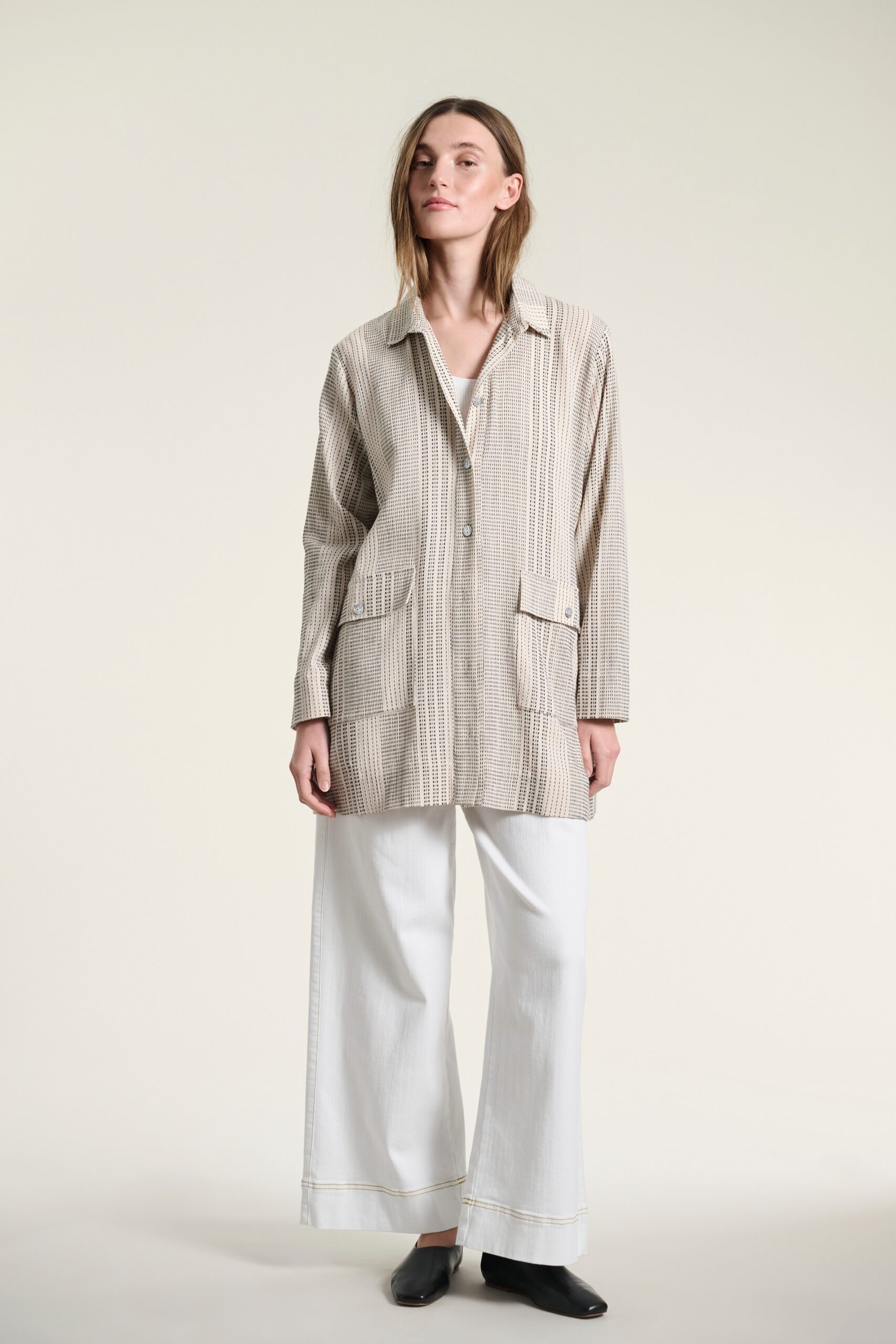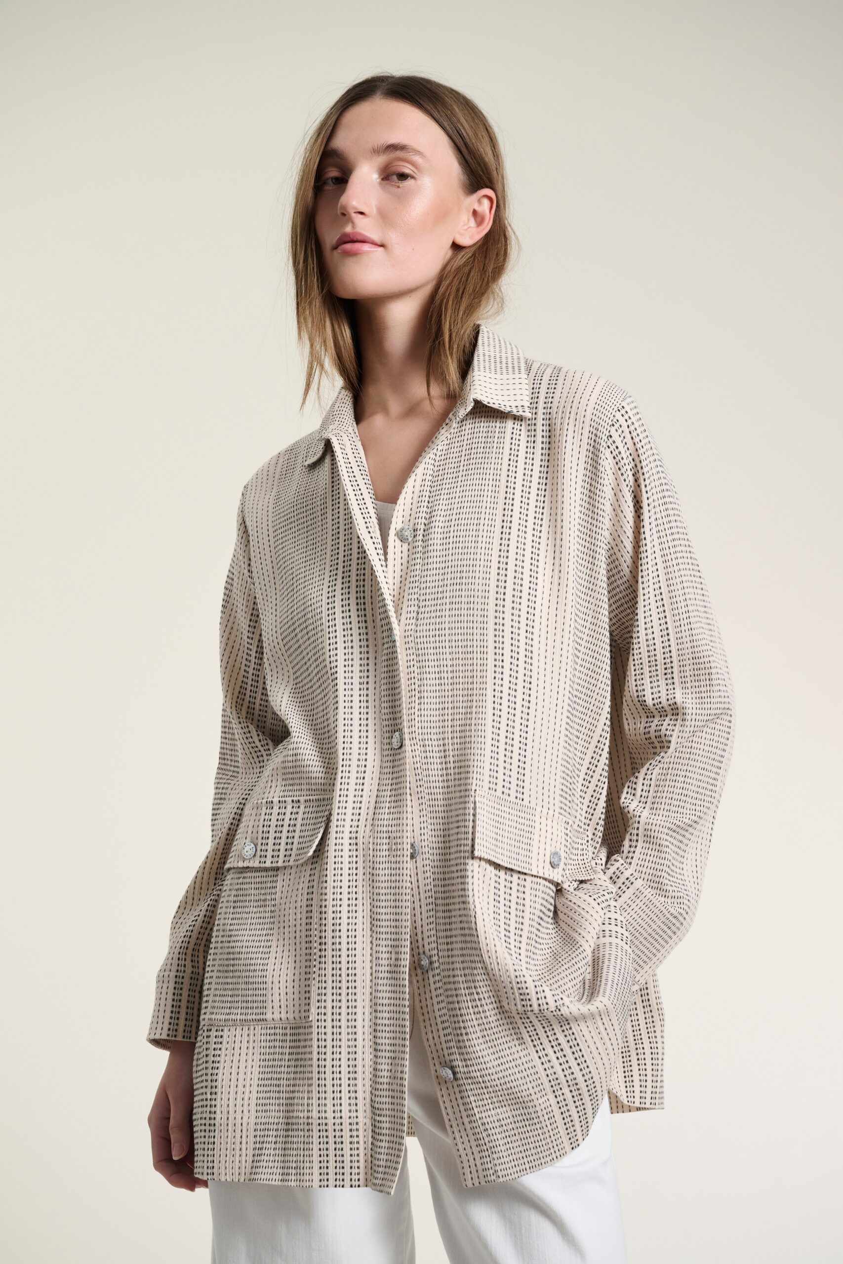 Shiko Long Shirt Ivory/Black Stitch 15039