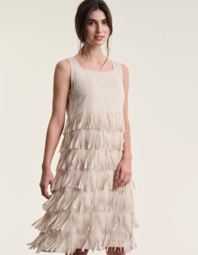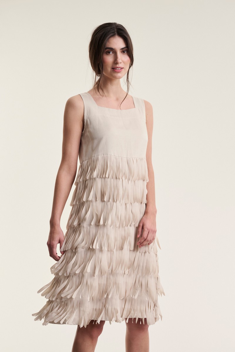 Sukosu Fringe Dress Ivory 15209